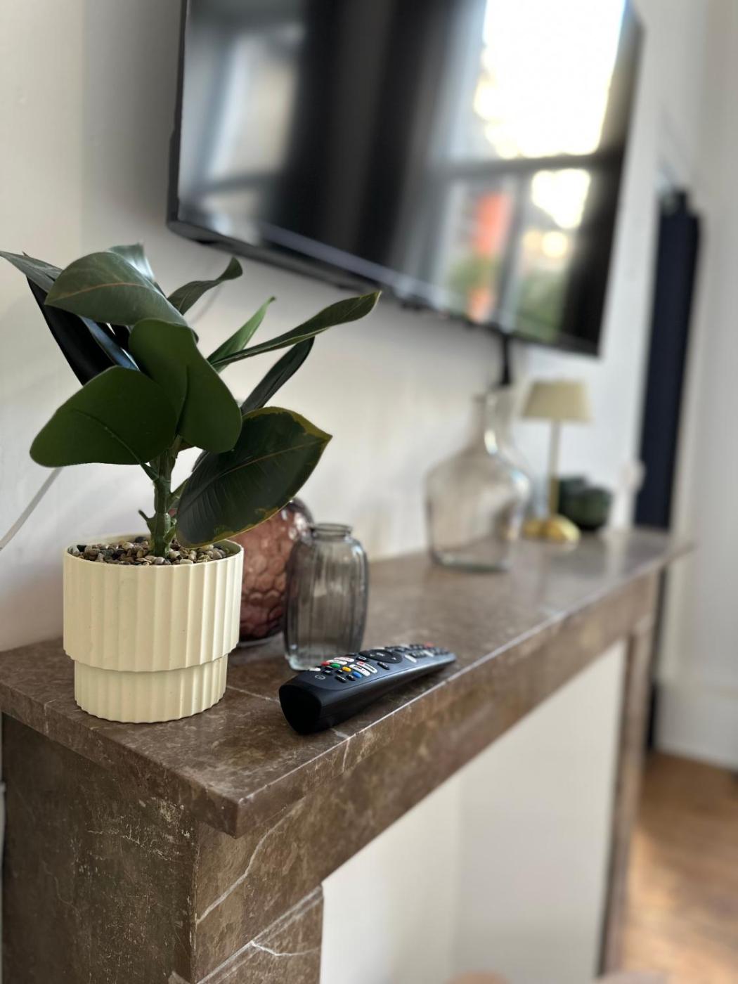 Cet appartement compte 1 chambre, un salon comportant une télévision à écran plat, et une cuisine entièrement équipée.