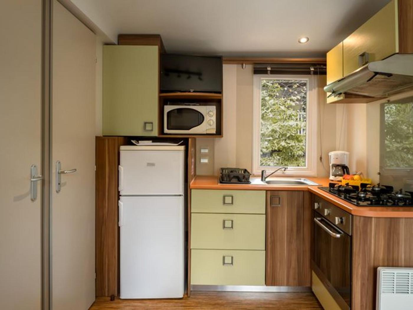 Mobile Home. Boasting a private entrance, this mobile home features 2 bedrooms, 1 bathroom and a kitchen. A kitchen fitted with kitchenware, an oven and a microwave is available for cooking and storing food. This mobile home has a washing machine, a coffee machine, a TV and a terrace.