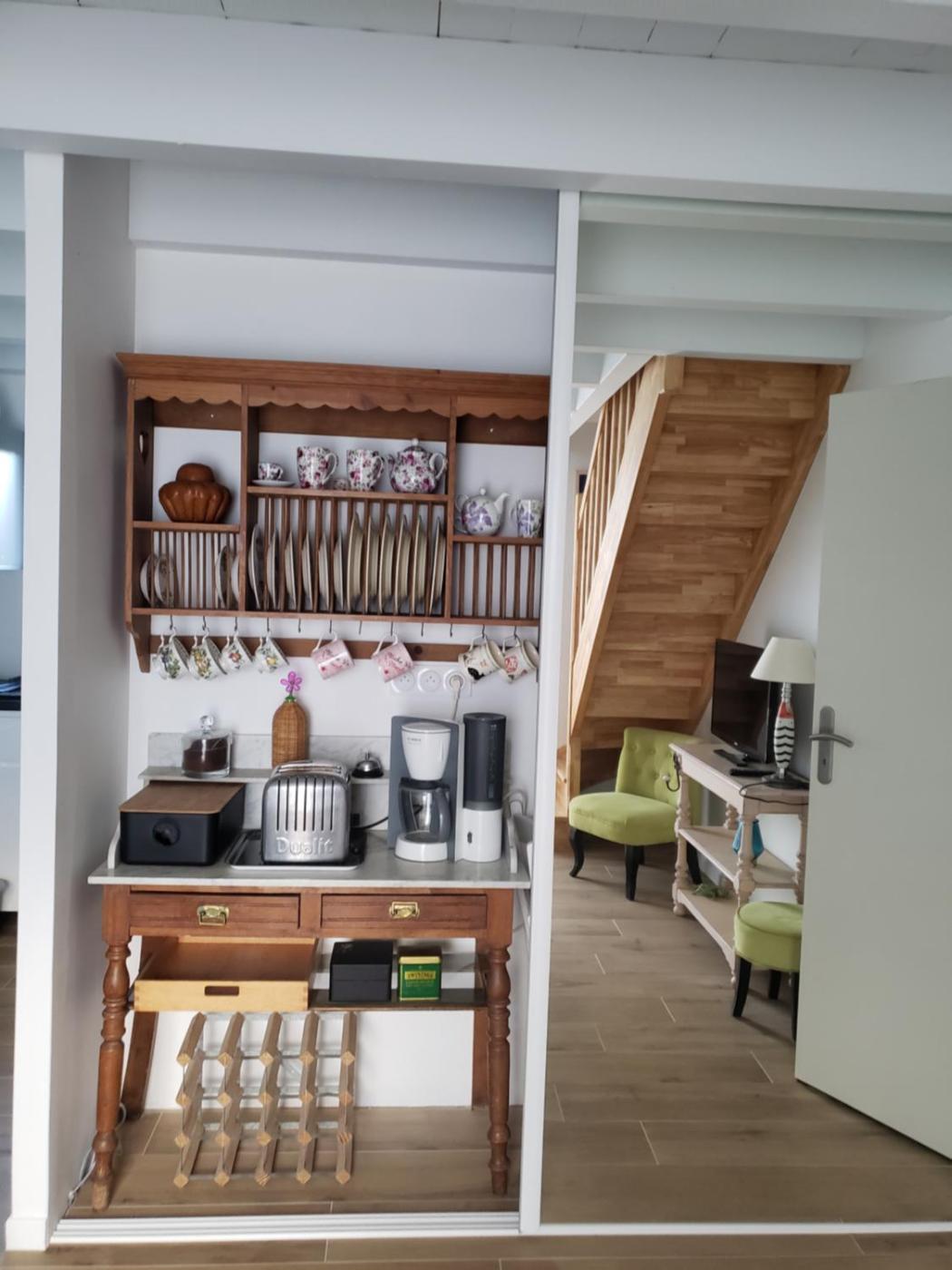 Maison 1 Chambre en Duplex. This holiday home comes with 1 living room, 1 separate bedroom and 1 bathroom with a walk-in shower and free toiletries. Guests can make meals in the kitchen that features a stovetop, a refrigerator, kitchenware and an oven. Boasting a terrace with sea views, this holiday home also features a tea and coffee maker and a flat-screen TV. The unit has 2 beds.