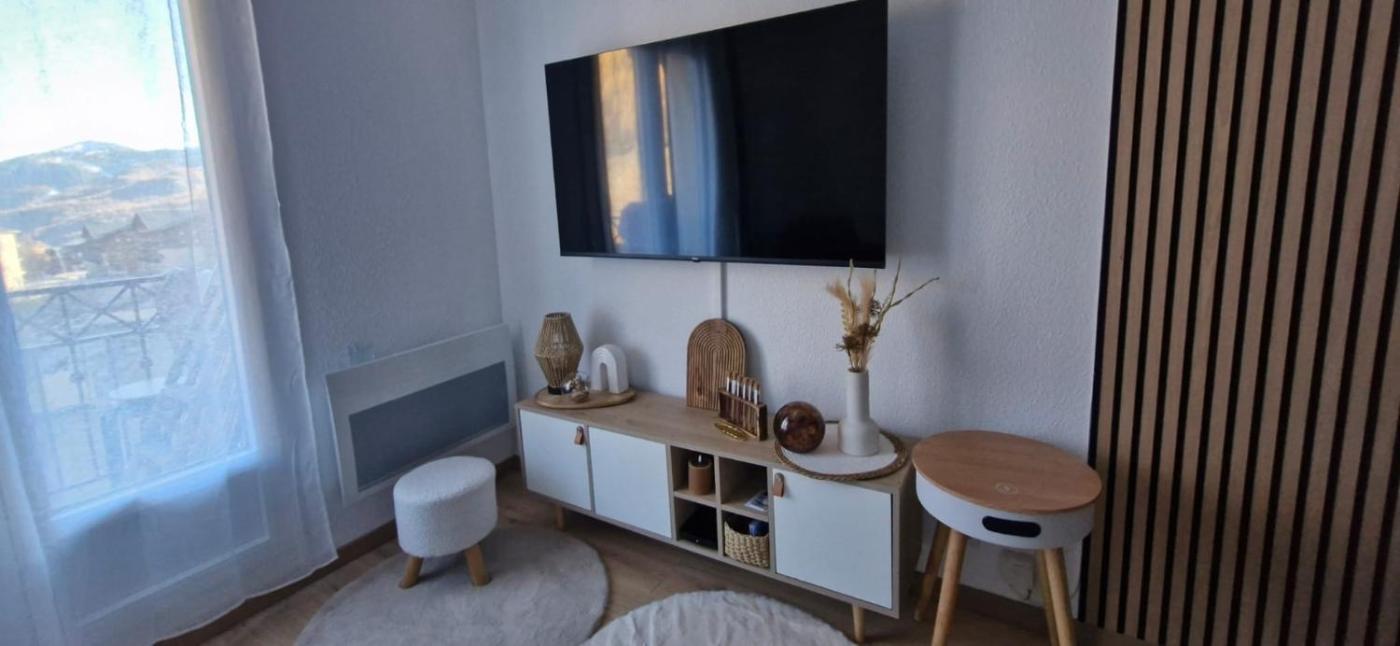 Comfortable Living Space: CSCM Location in La Foux dAllos offers a one-bedroom apartment with a terrace and free WiFi. The living room includes a sofa bed and parquet floors, providing a cosy environment.