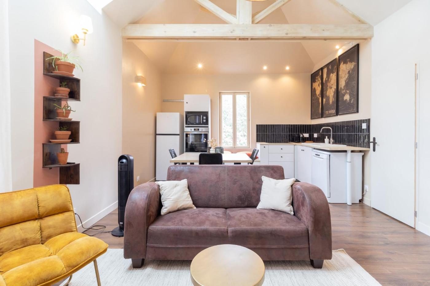 Appartement 2 Chambres. Guests will have a special experience as the apartment features a fireplace. Featuring a private entrance, this apartment consists of 1 living room, 2 separate bedrooms and 1 bathroom with a shower and a hairdryer. Guests can make meals in the kitchen that is equipped with a stovetop, a refrigerator, a dishwasher and kitchenware. Boasting a terrace with garden views, this apartment also provides a washing machine and a flat-screen TV with streaming services. The unit offers 2 beds.