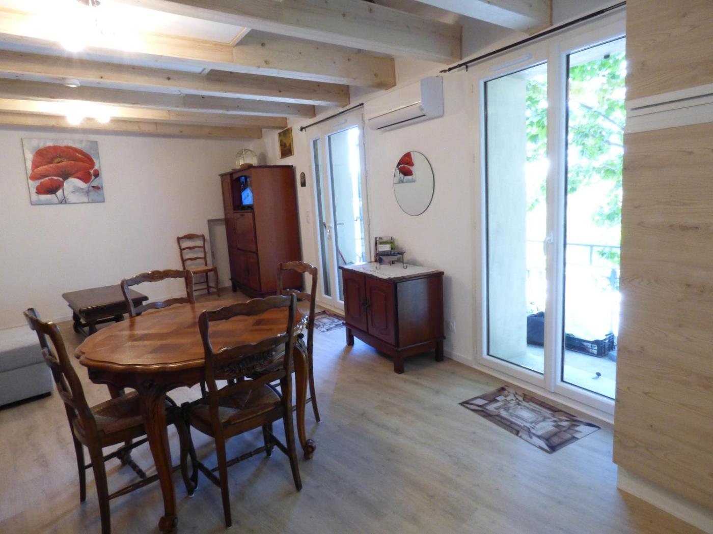 Appartement 1 Chambre. Featuring a private entrance, this air-conditioned apartment consists of 1 living room, 1 separate bedroom and 1 bathroom with a shower and a hairdryer. Guests will find a stovetop, a refrigerator, kitchenware and an oven in the well-fitted kitchen. The apartment also offers a barbecue. Boasting a balcony with garden views, this apartment also provides a washing machine and a flat-screen TV. The unit offers 3 beds.