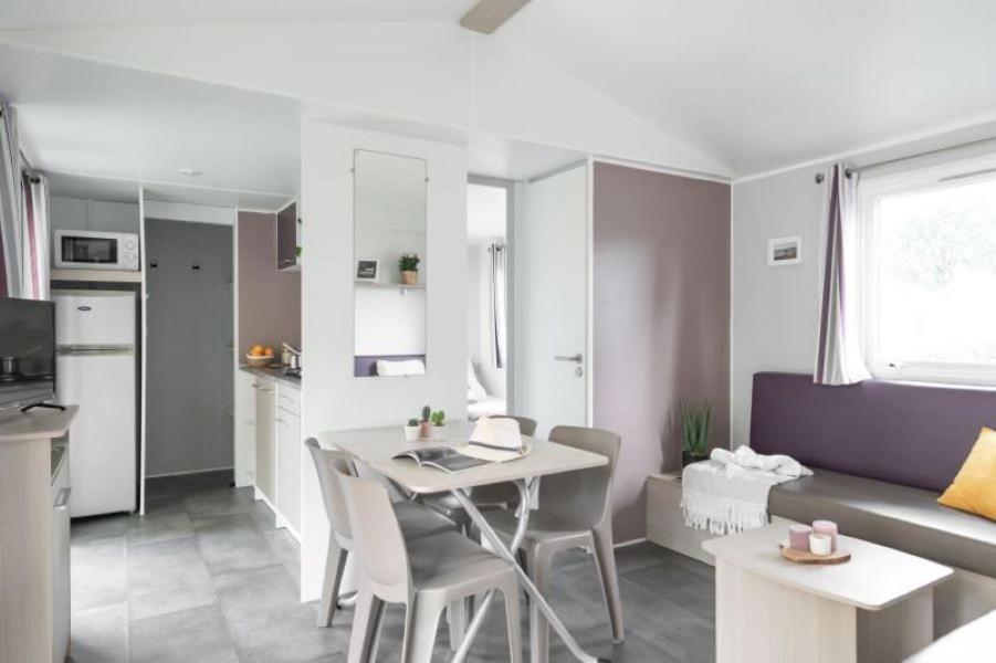 Mobile Home. Ce mobile home dispose d’un salon, de 2 chambres séparées et d’une salle de bains avec une douche. Vous pourrez préparer vos repas et conserver vos aliments dans la cuisine équipée d’un réfrigérateur et d’un micro-ondes. Des ustensiles sont fournis. Doté dune terrasse et d’un coin salon, ce mobile home dispose également dune machine à café et dune télévision à écran plat. Ce logement comprend 3 lits. ;