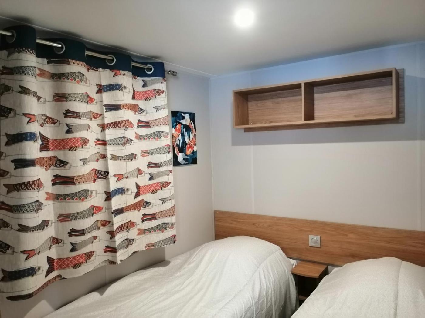 Mobile Home. Boasting a private entrance, this mobile home includes 1 living room, 2 separate bedrooms and 1 bathroom with a shower. Guests will find a stovetop, a refrigerator, a dishwasher and kitchenware in the fully equipped kitchen. The mobile home also features a barbecue. Featuring a terrace with garden views, this mobile home also offers a tea and coffee maker and a flat-screen TV with satellite channels. The unit has 4 beds.