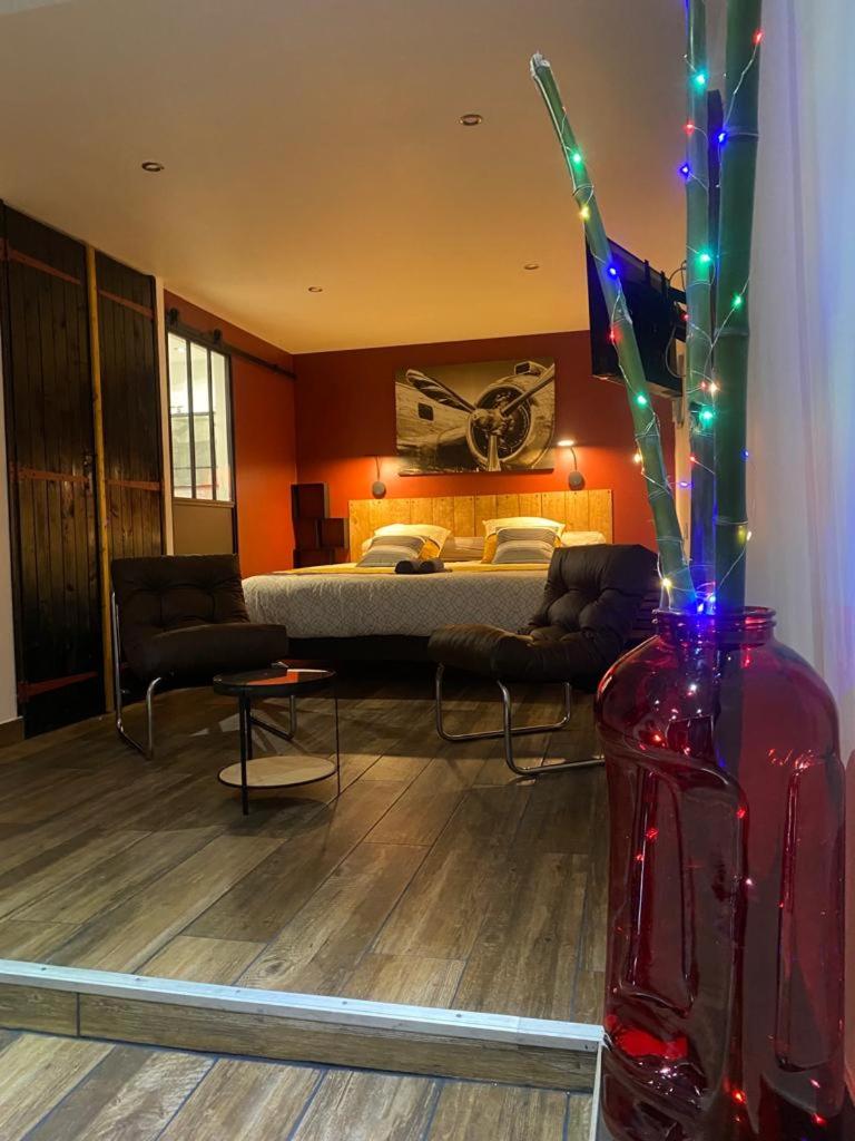 Chambre Double. The pool with a view is the standout feature of this double room. The double room features air conditioning, a private entrance, as well as a private bathroom boasting a shower and a hairdryer. The double room offers a wardrobe, parquet floors, a tiled floor, heating, as well as a flat-screen TV with cable channels. The unit has 1 bed. ;