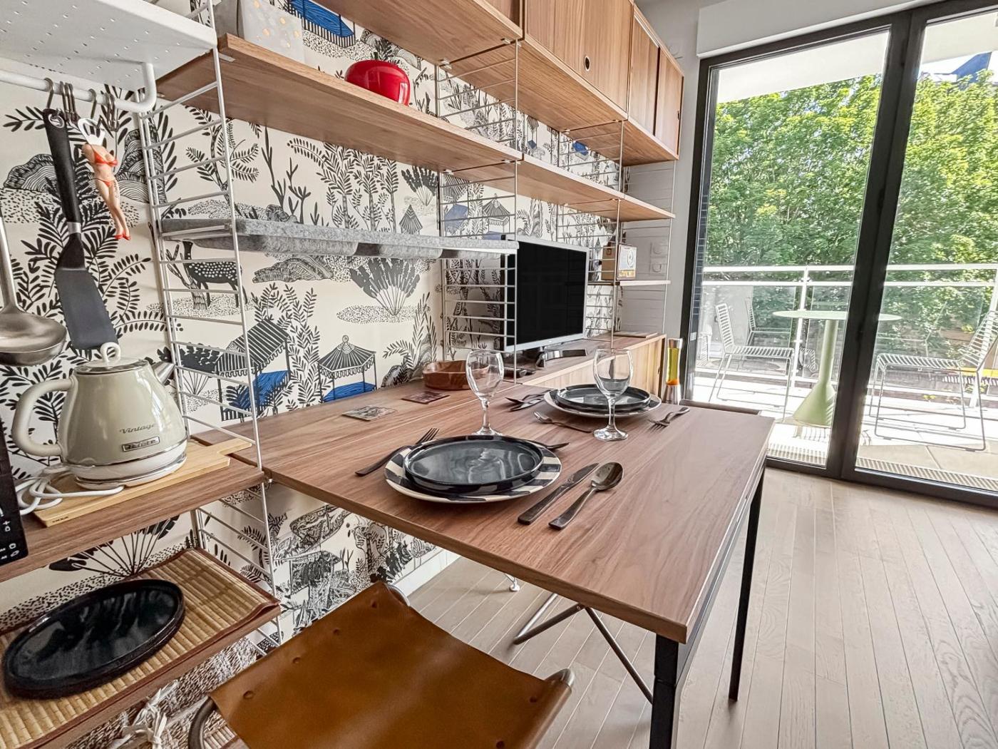 Studio avec Balcon. The studio provides a coffee machine, a seating area, as well as a private bathroom boasting a shower and a hairdryer. The fully equipped kitchenette features a stovetop, a refrigerator, kitchenware and a microwave. Featuring a balcony, this studio also offers a washing machine, a private entrance and a flat-screen TV with cable channels. The unit offers 1 bed.