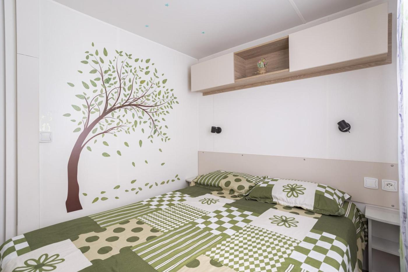 Mobile Home. Featuring a private entrance, this air-conditioned mobile home is comprised of a kitchen, 3 bedrooms and 1 bathroom with a shower and a hairdryer. The well-equipped kitchen has a dishwasher, kitchenware, an oven and a microwave. This mobile home features a washing machine, a coffee machine, a TV with cable channels and a patio. The unit offers 5 beds.